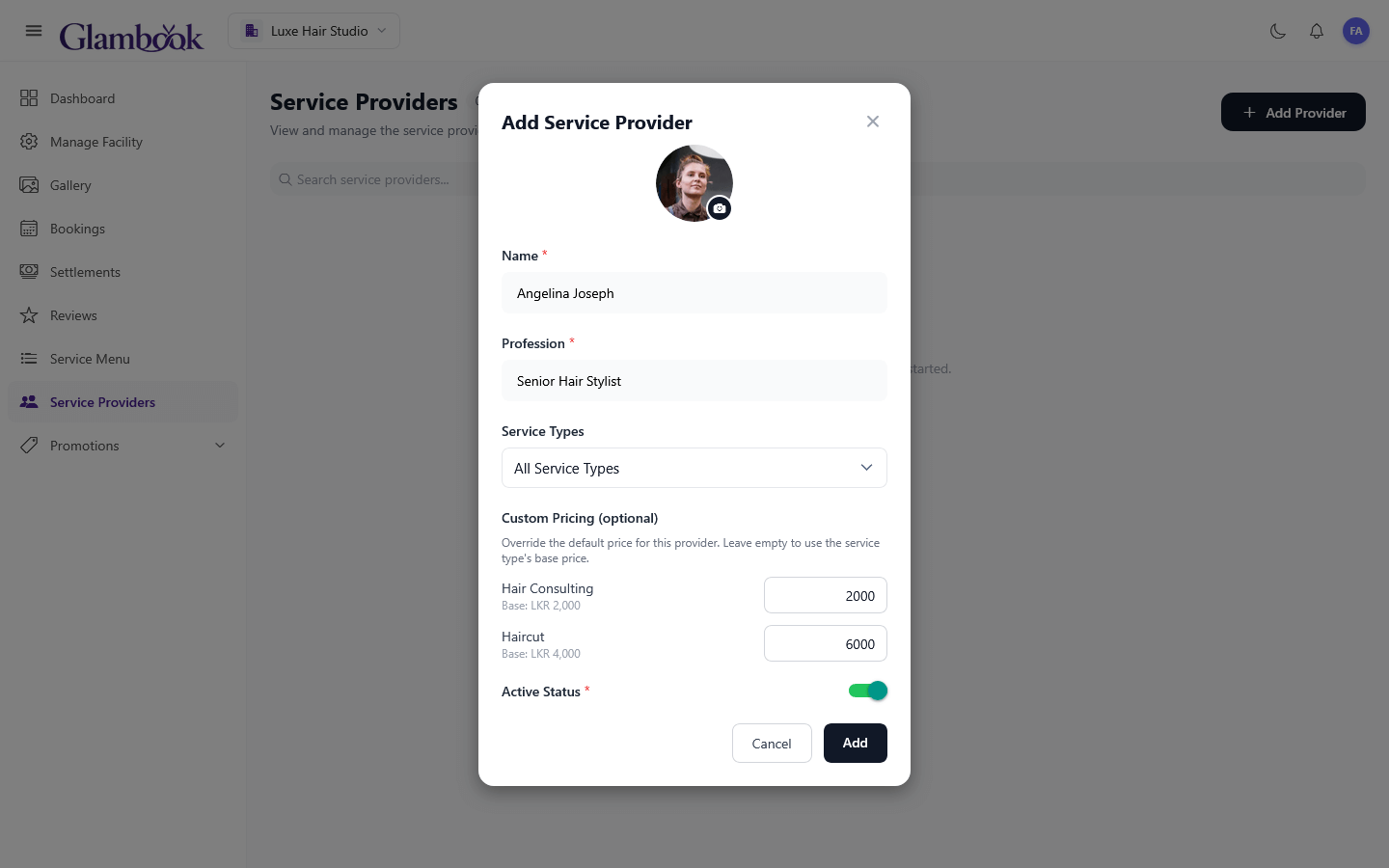 - Assign the services they offer — you can set custom pricing per provider if needed