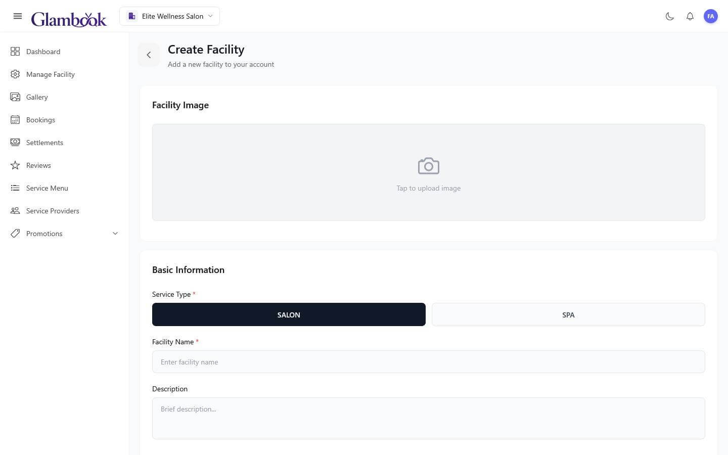 - Select your service type (Salon or Spa)