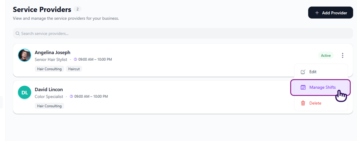 - Tap the provider's menu and select Manage Shifts