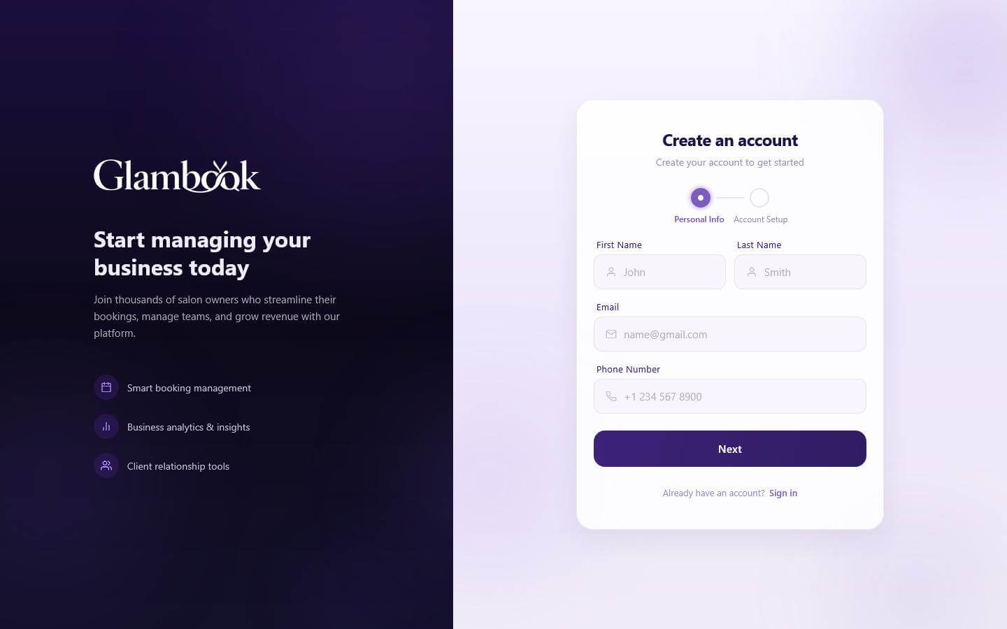 Get your salon live on Glambook in 5 steps. After creating your salon, you'll see a Launch Checklist on your dashboard that guides you through each step until you're ready to go live.
